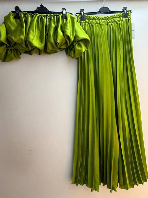 Crop top Ensemble pantalons Manches courtes Plissés Uni